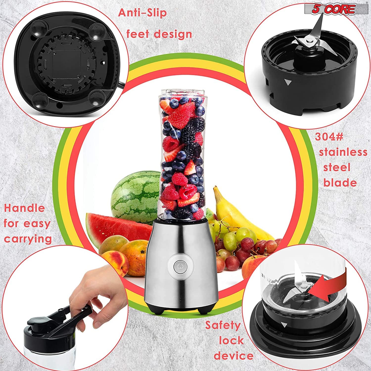 Personal Blender 20 Oz Capacity| BPA Free Food Processor with Portable Bottle 600ml| 300W Electric Motor Powerful Blender with 4 Stainless Steel Blades| For Shakes and Smoothies - 5C 521