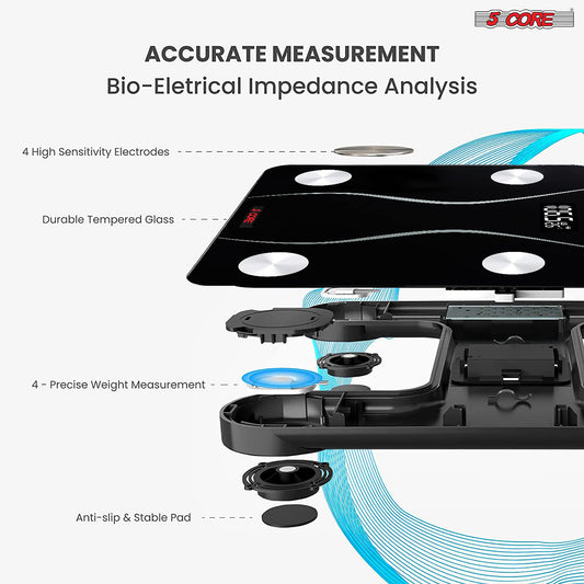 Accuracy: 5 Core digital bathroom scales use state-of-the-art sensors to measure weight, which is more accurate than traditional scales. This precise measurement is especially helpful for closely monitoring their weight or body composition.