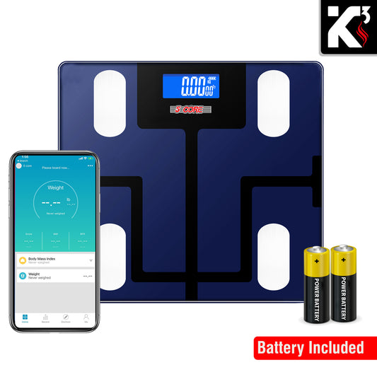 Kcubeinc Smart Digital Scale for Body Weight and Fat Percentage, Battery Power Digital Bathroom Smart Scale Bluetooth Body Fat Scale, BMI Monitor with App 400lbs- BBS 03 B SG