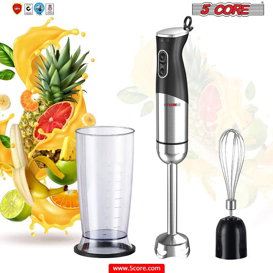 Powerful Immersion Blender Black| 500 Watt Multi-Purpose Hand Blender Heavy Duty Copper Motor w/ Steel Finish | for Soup, Smoothie, Puree, Baby Food, 304 Stainless Steel Blades- HB 1510 BLK