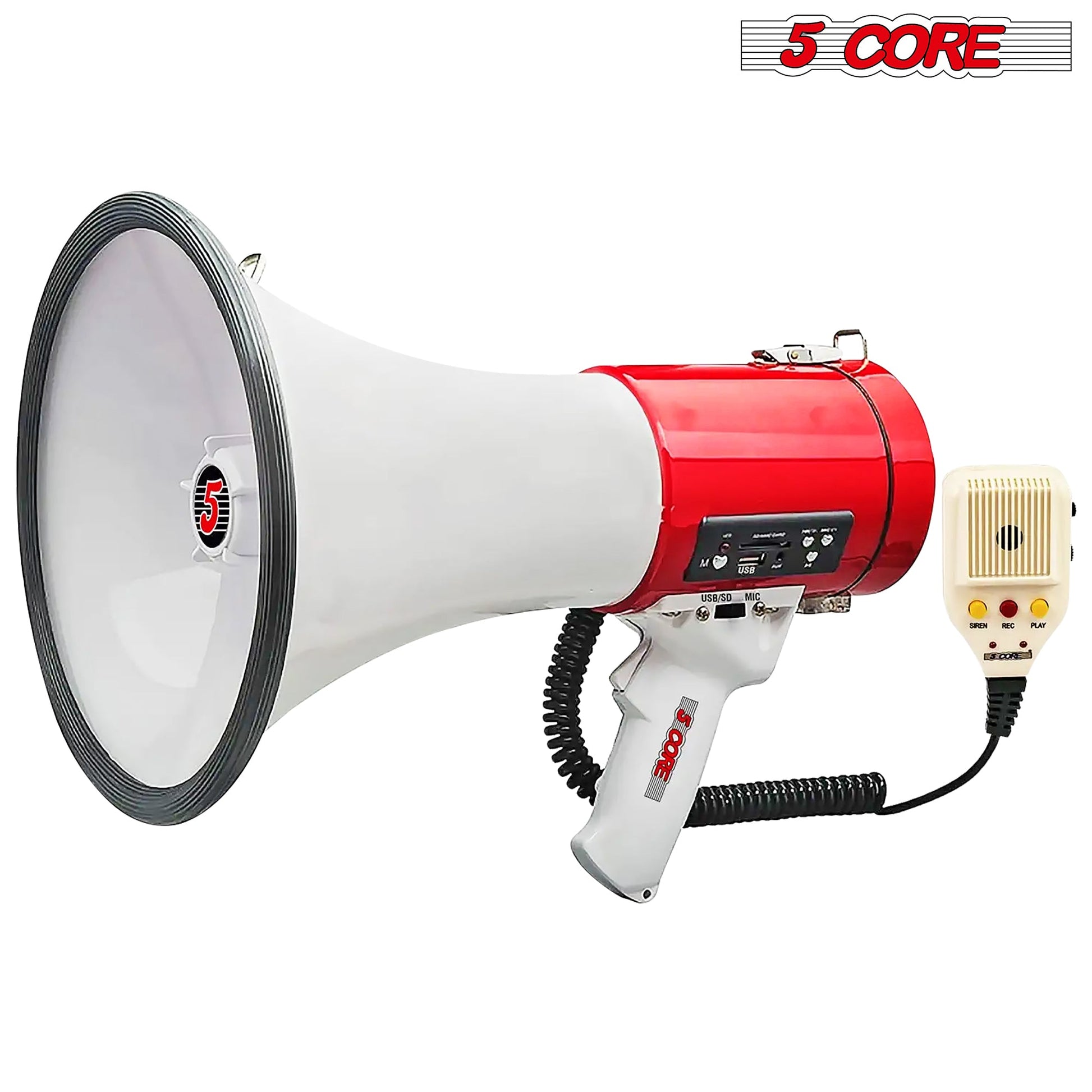 This bullhorn megaphone speaker, with a detachable mic input with siren and recording options, can be used indoors and outdoors by police, firefighters, cheerleader, trainers, movie directors, and more. |