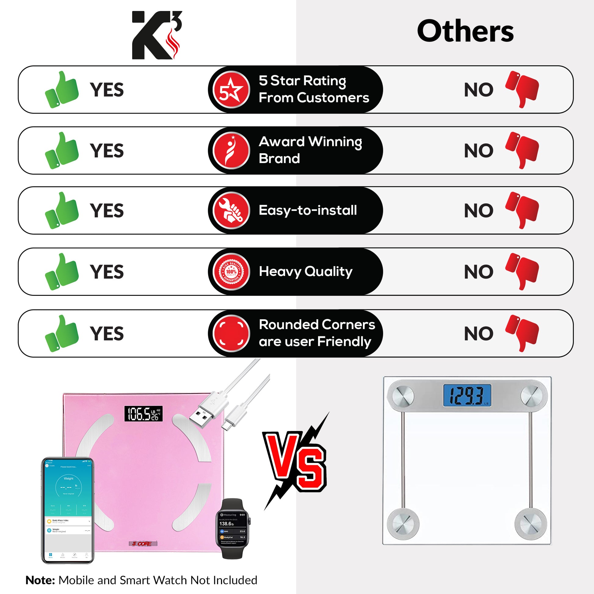 An Easy Choice: Kcubeinc bathroom weighing scale for body weight are the perfect companion for fitness enthusiasts, as they work seamlessly with various fitness apps. It is easy to use, intuitive, and has thousands of happy customers worldwide.