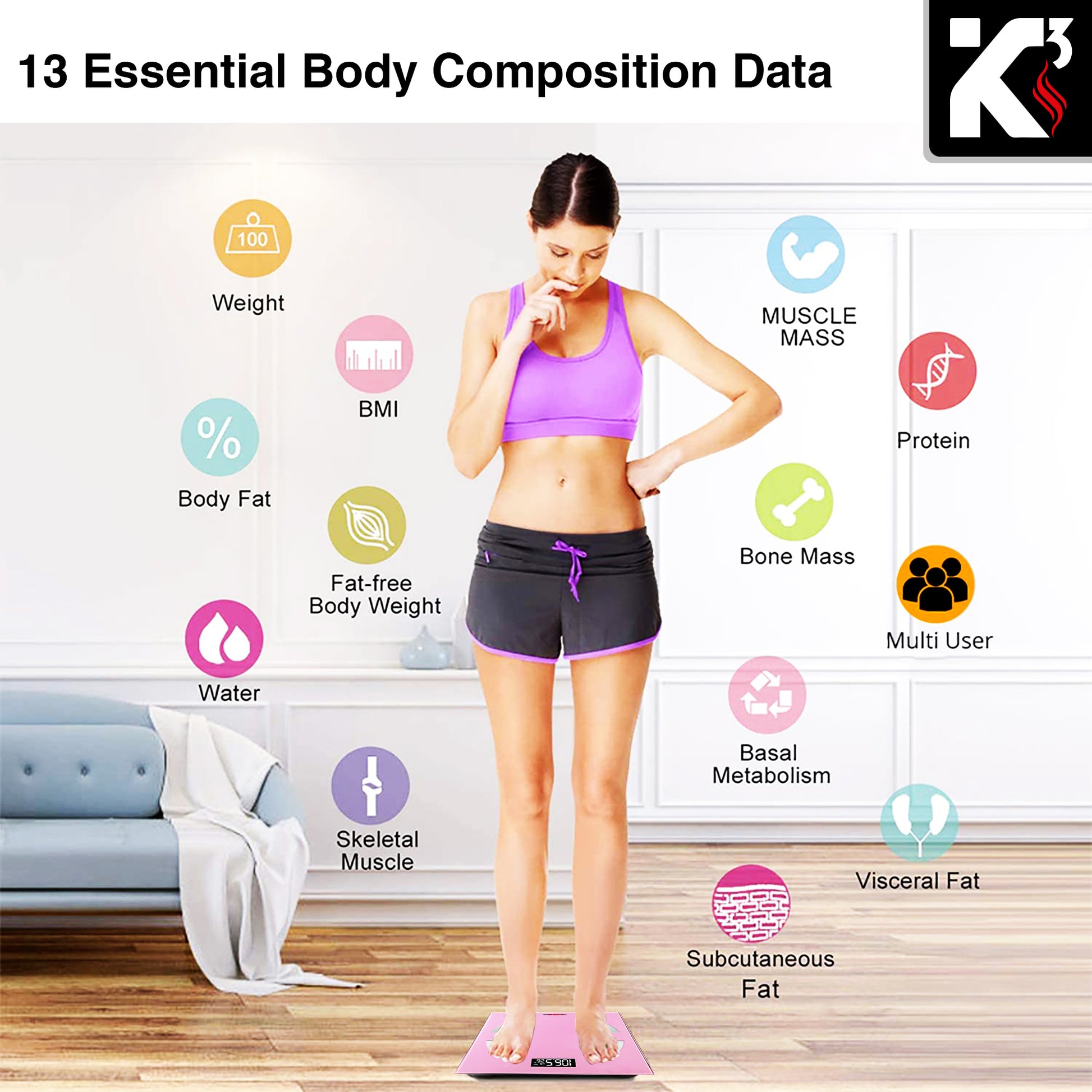 13 essential body measurements: Get access to 13 essential body measurements with a Kcubeinc digital scale. The weight scale can display body weight, while other body composition data, such as BMI and body fat percentage, are stored in the app. You can track these data with the app, making it easier to follow your goal.