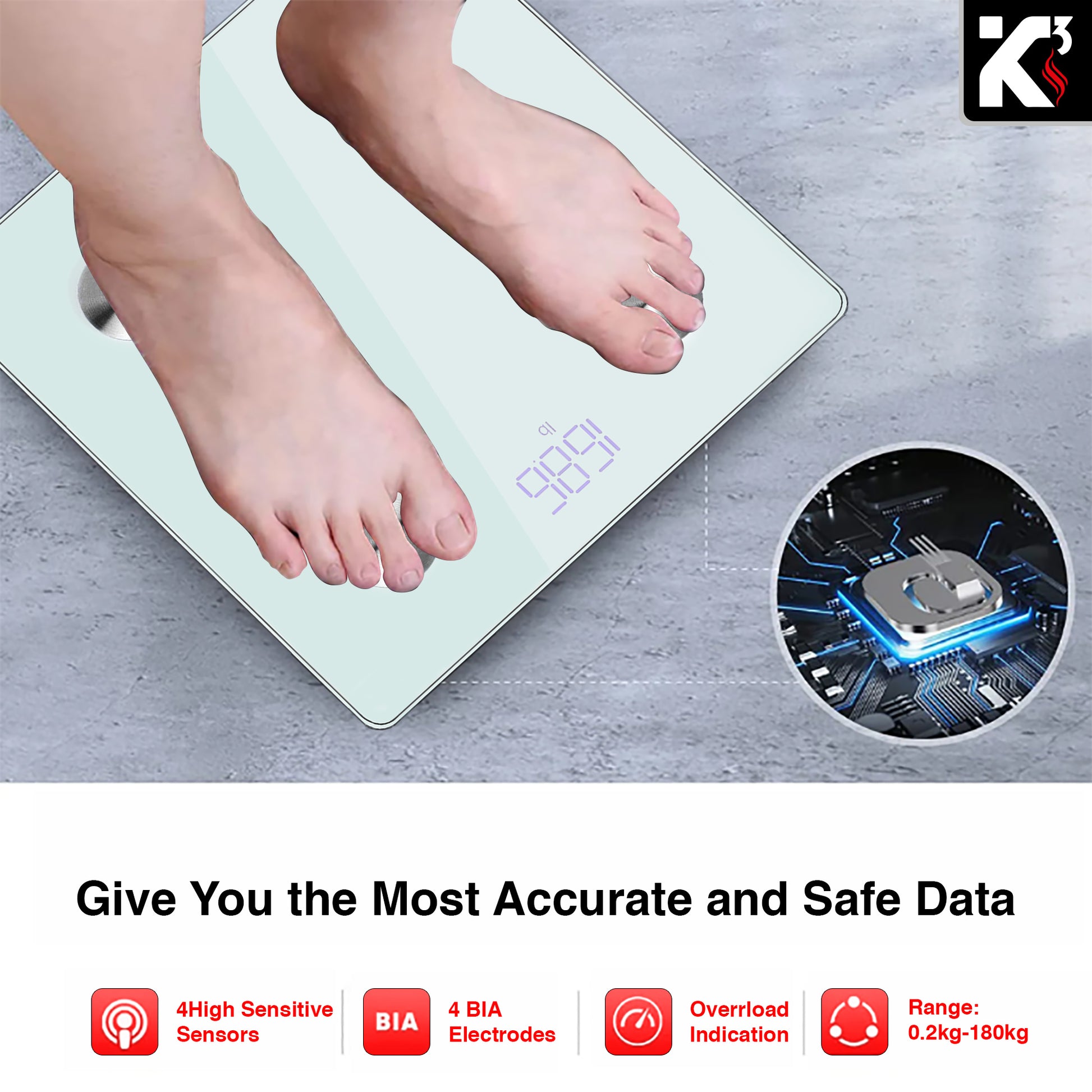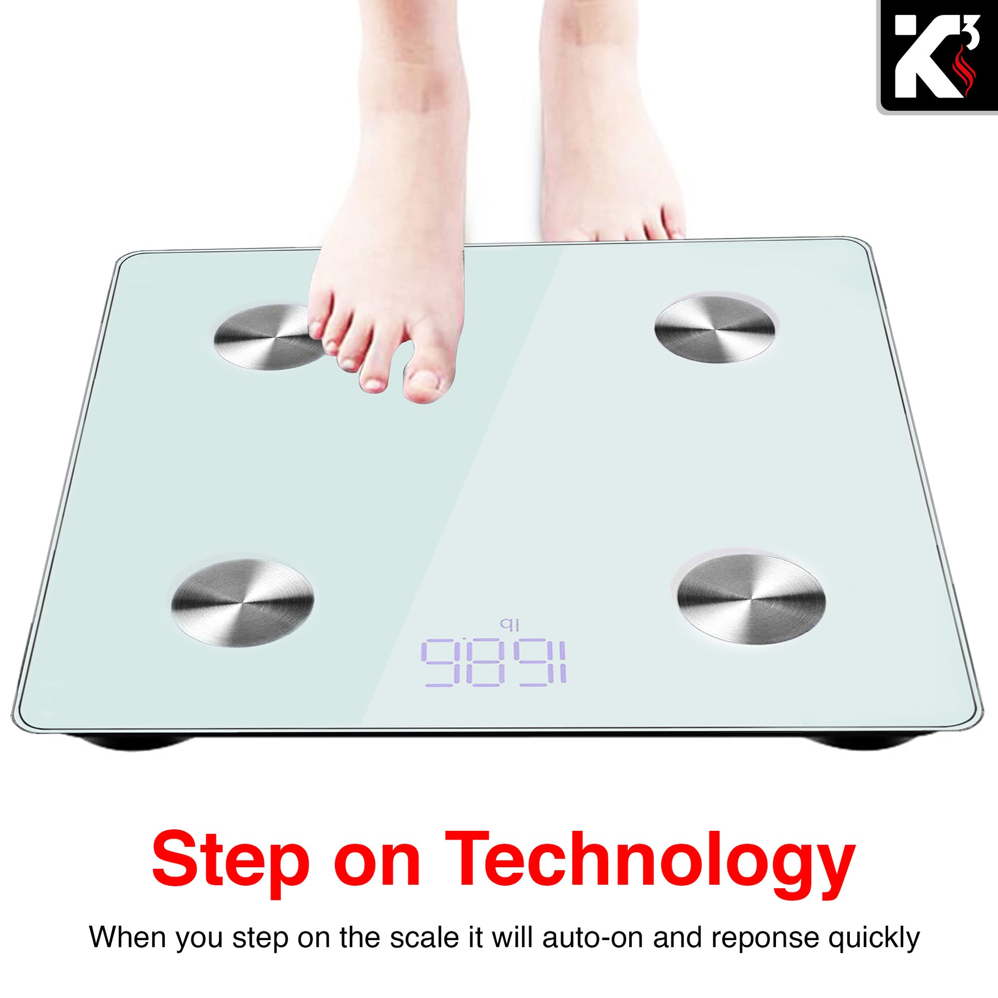 Highly Accurate, Fully Automatic: The Kcubeinc digital scale is highly accurate and fully automatic, with four high-precision sensors and four sensitive electrodes working together to ensure consistent body composition analysis. You only need to step on the body weight scales to get timely readings, with no need to tap to activate the weight scale.