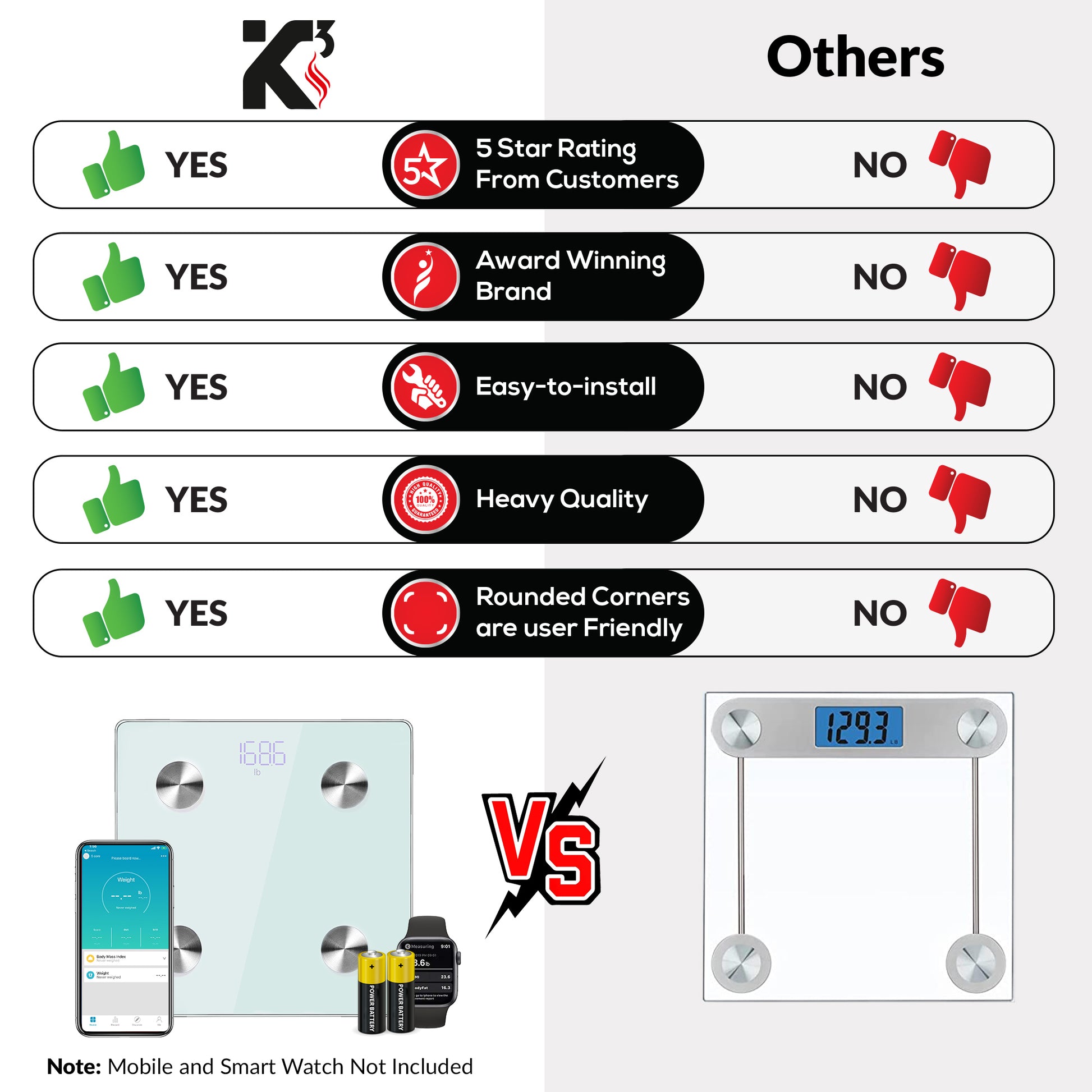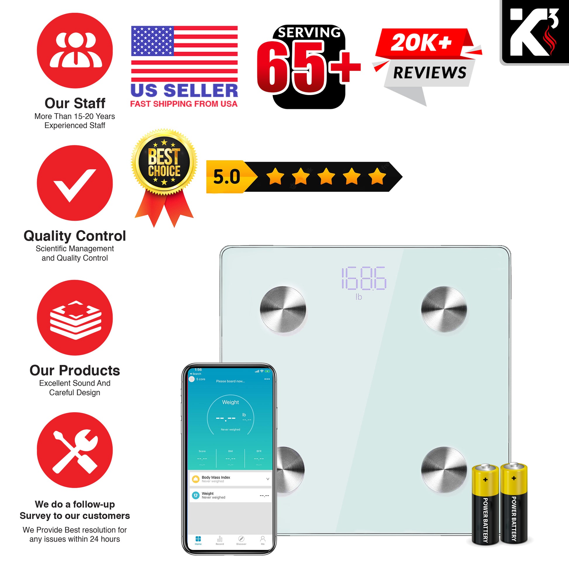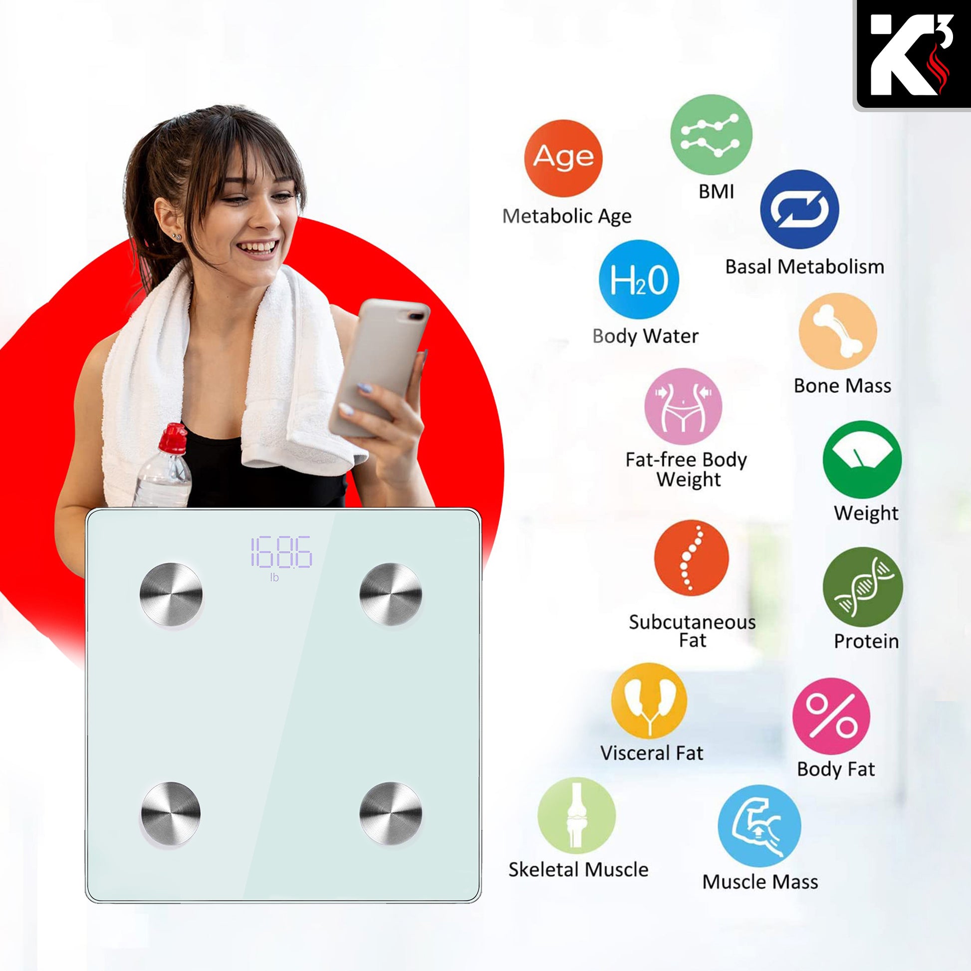 Kcubeinc 2 Pieces Smart Digital Bathroom Weighing Scale with Body Fat and Water Weight for People, Bluetooth BMI Electronic Body Analyzer Machine, 400 lbs. BBS DOT B WH