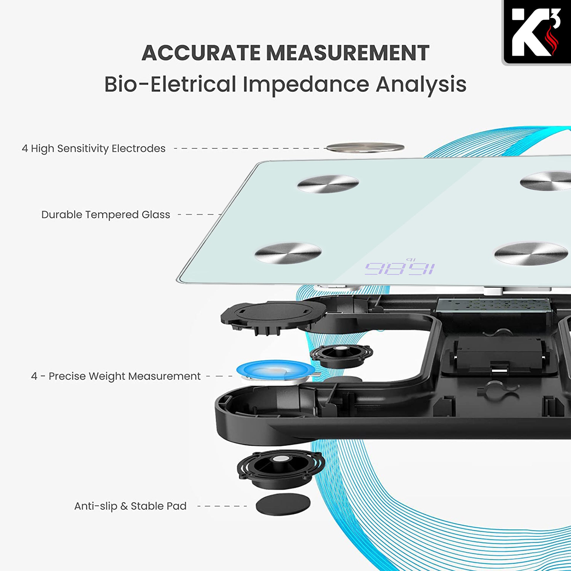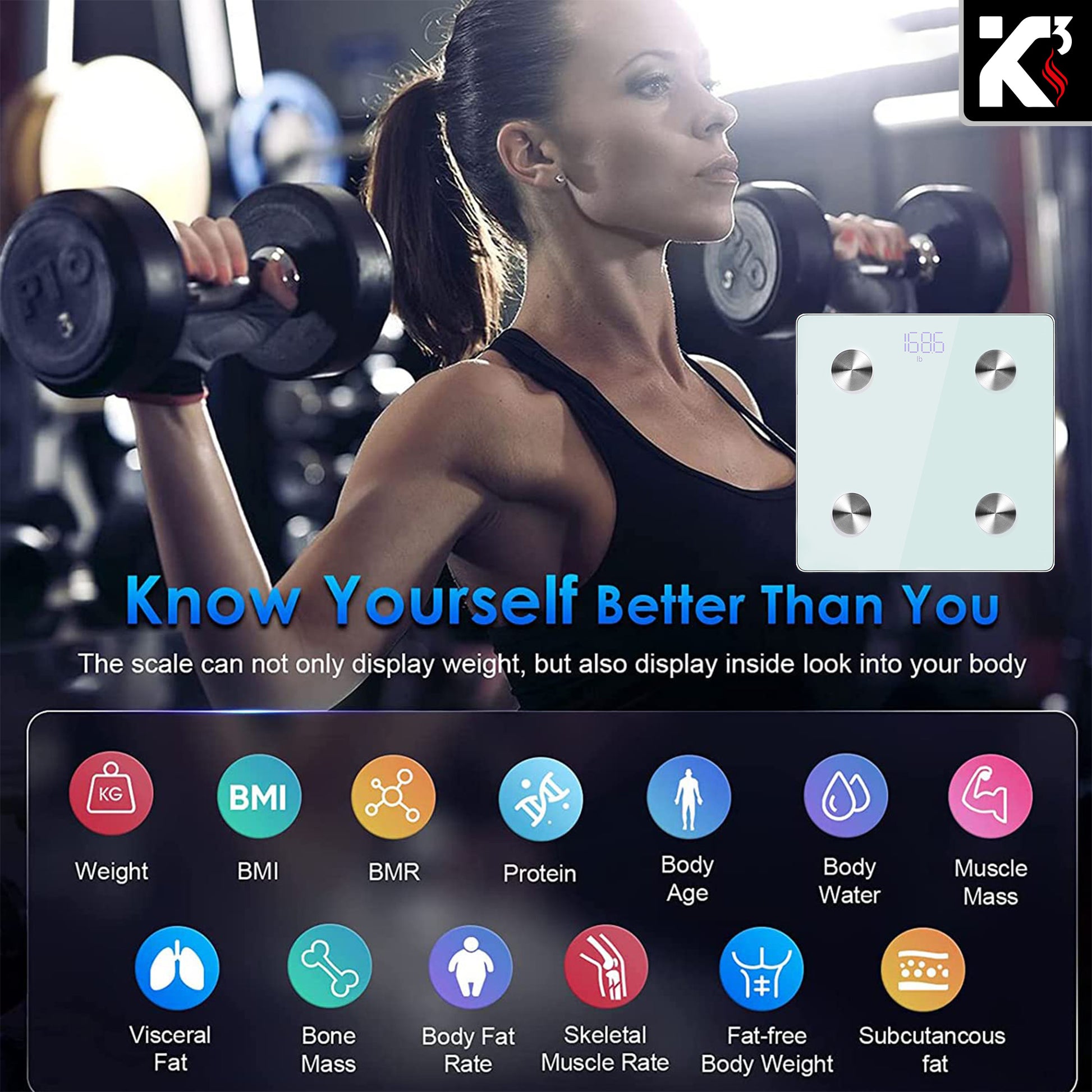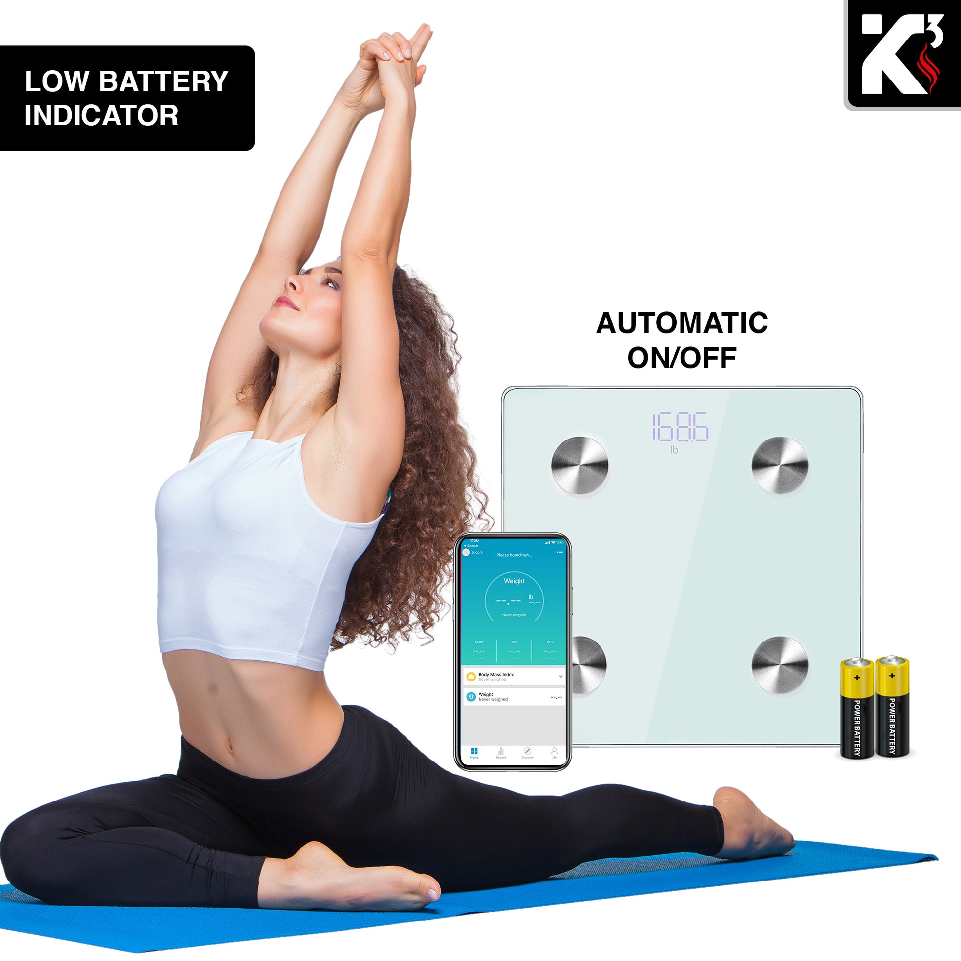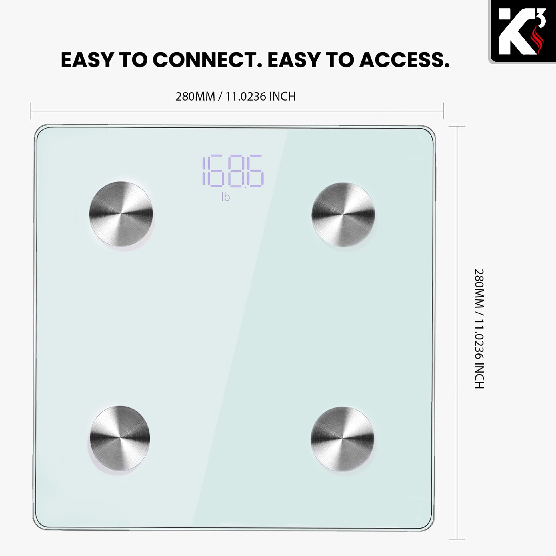 Syncs With Fitness App: The Kcubeinc smart digital bathroom scale uses its inbuilt Bluetooth technology to sync with the fitness app. The bathroom scale can sync data with Android and iOS devices using OKOK App, allowing you to keep track of your goals irrespective of device type.