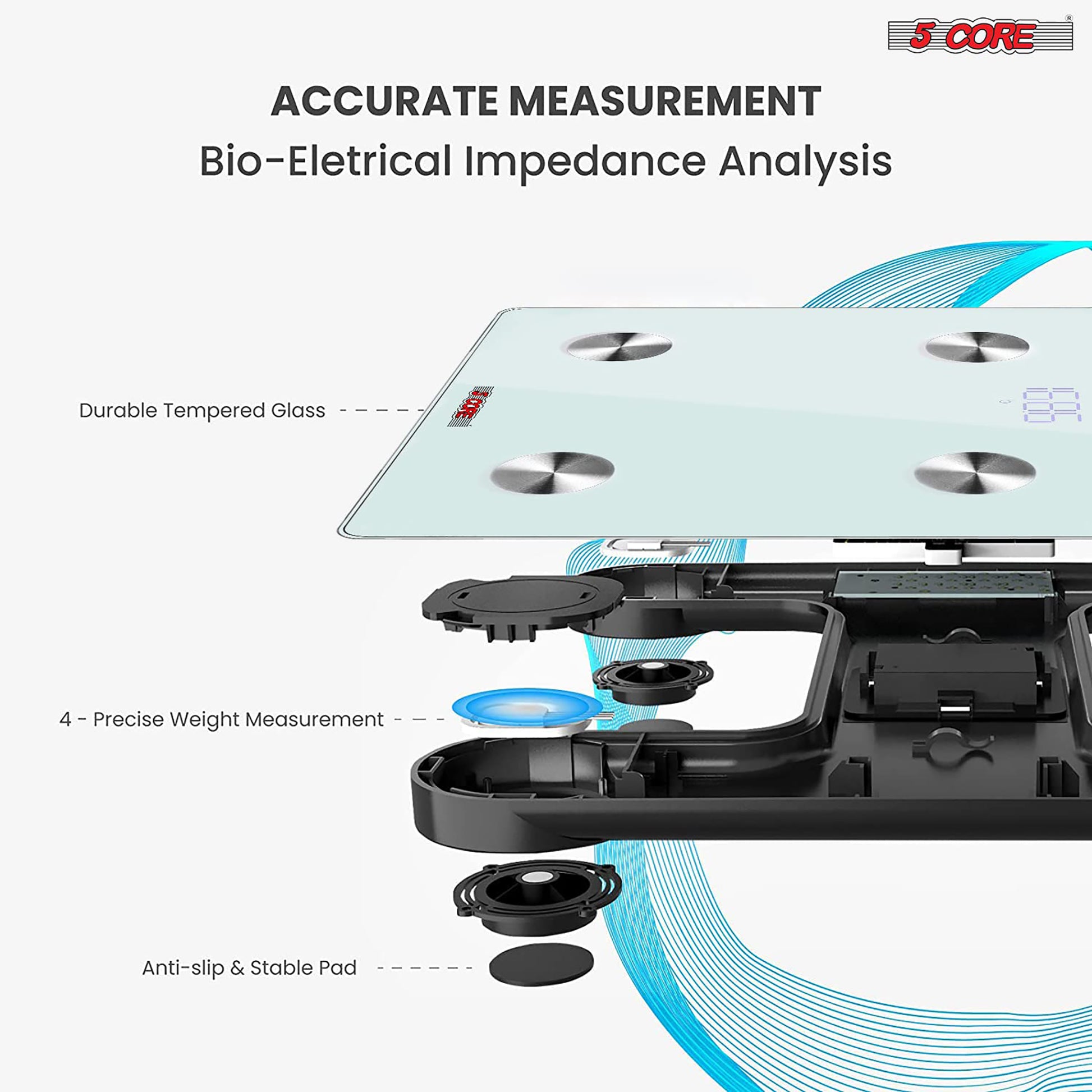 Kcubeinc Rechargeable Smart Digital Bathroom Weighing Scale with Body Fat and Water Weight for People, Bluetooth BMI Electronic Body Analyzer Machine, 400 lbs. BBS DOT R WH