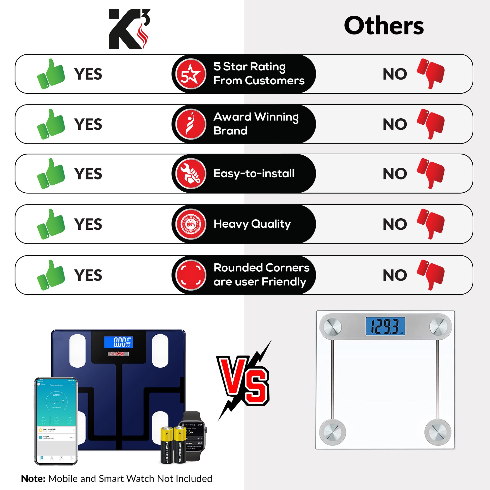 Syncs With Fitness App: The Kcubeinc smart digital bathroom scale uses its inbuilt Bluetooth technology to sync with the fitness app. The bathroom scale can sync data with Android and iOS devices using OKOK App, allowing you to keep track of your goals irrespective of device type.