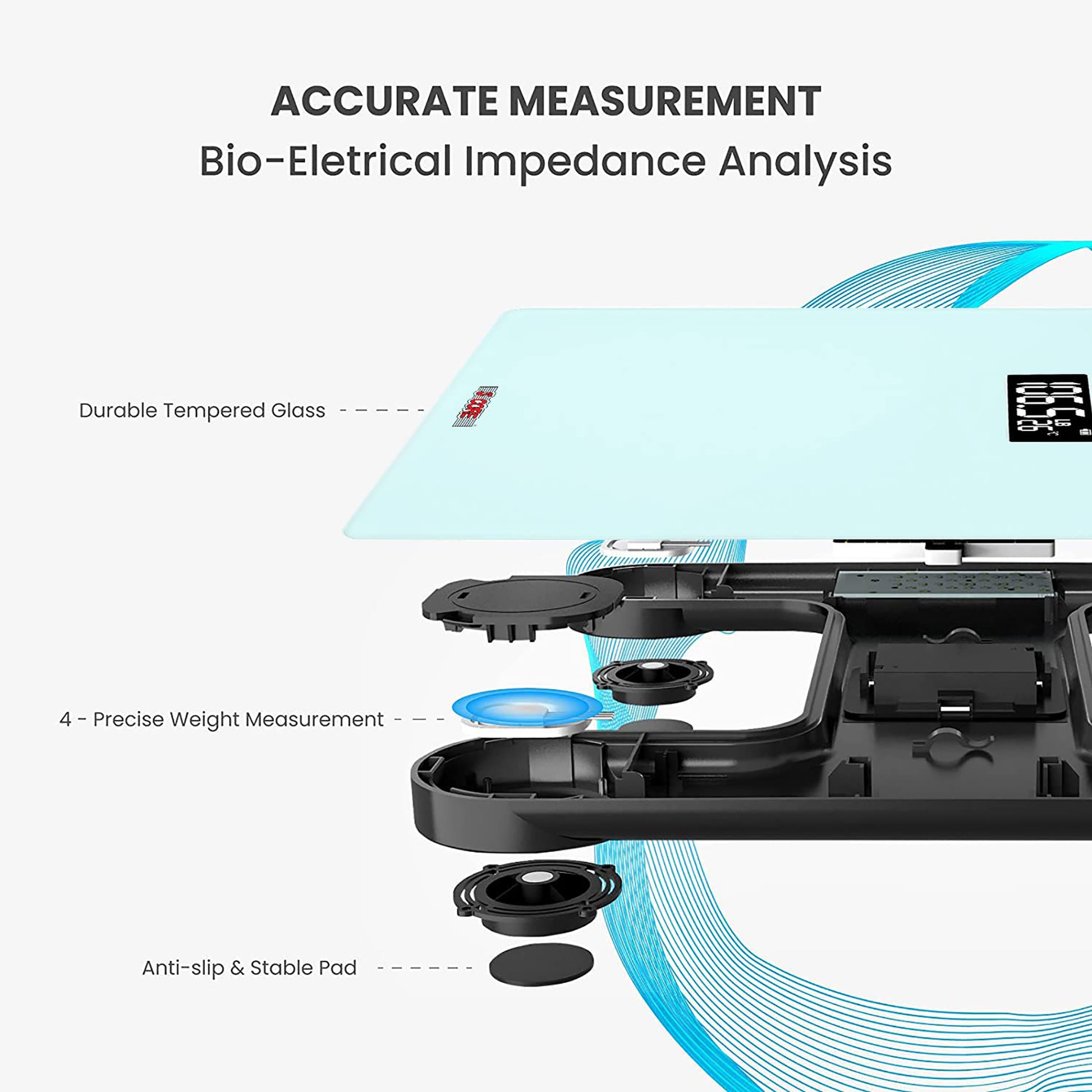 Accurate & consistent: Kcubeinc Bathroom scales for body weight are built in 4 high-precision sensors with auto-calibration and balanced design, which enhance the accuracy of differences within 0.2 lb / 0.1 kg. This body fat scale gives a highly accurate and consistent weight measurement. This Smart Scale is designed to help you towards a healthier lifestyle.