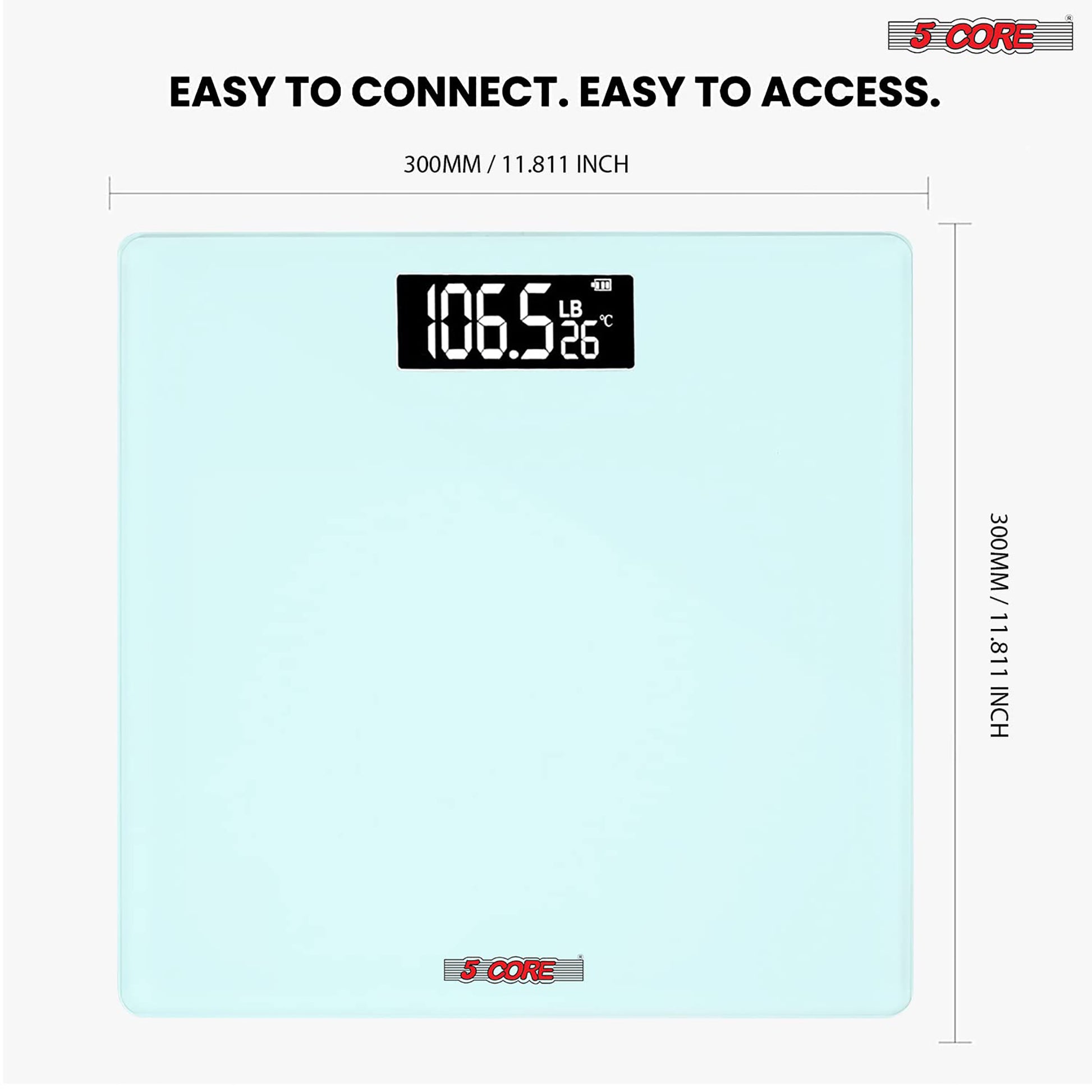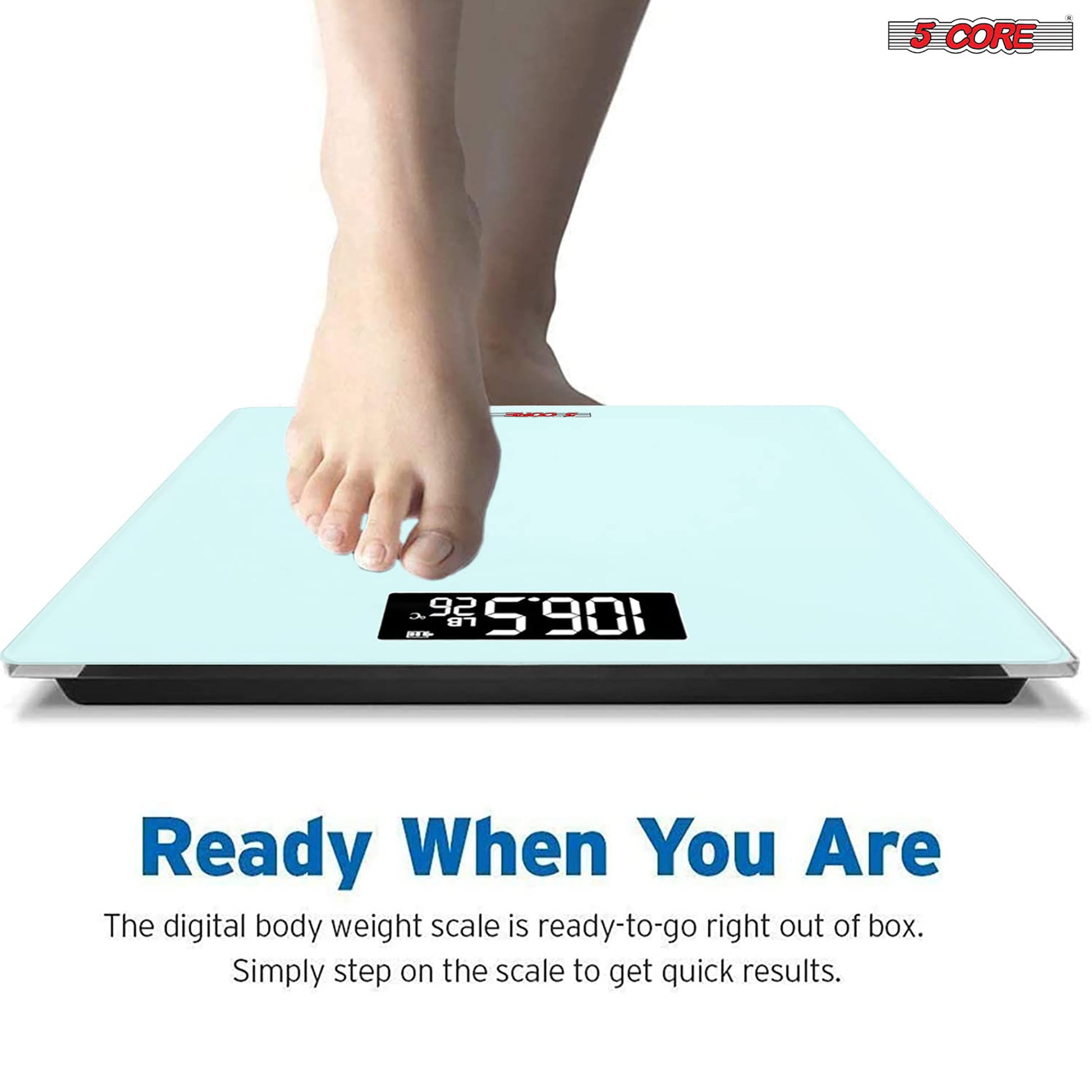 Elegant glass design: This digital body weight scale is made with 6mm Scratch proof tempered glass; it's sleek, nice looking, lightweight, Heavy-duty, and sturdy enough to hold up to 400 pounds/ 180 kg; large platform of 11.8" x 11.8" x 0.2".