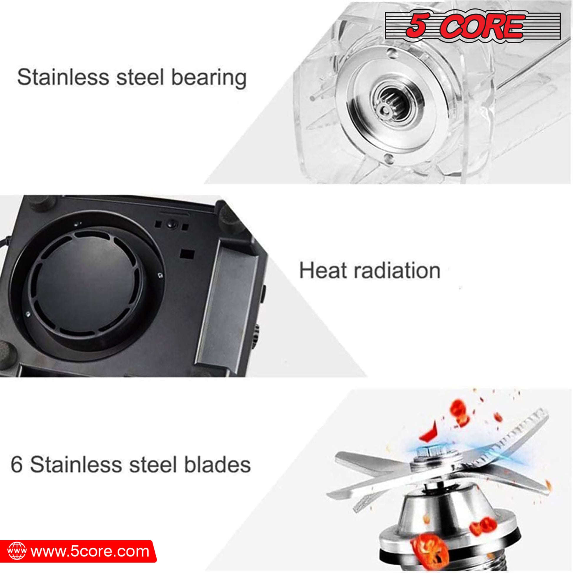 The high-performance 2000W motor of the our smoothie blender is designed to handle tough ingredients like frozen fruit, heavy powder, and leafy green. |