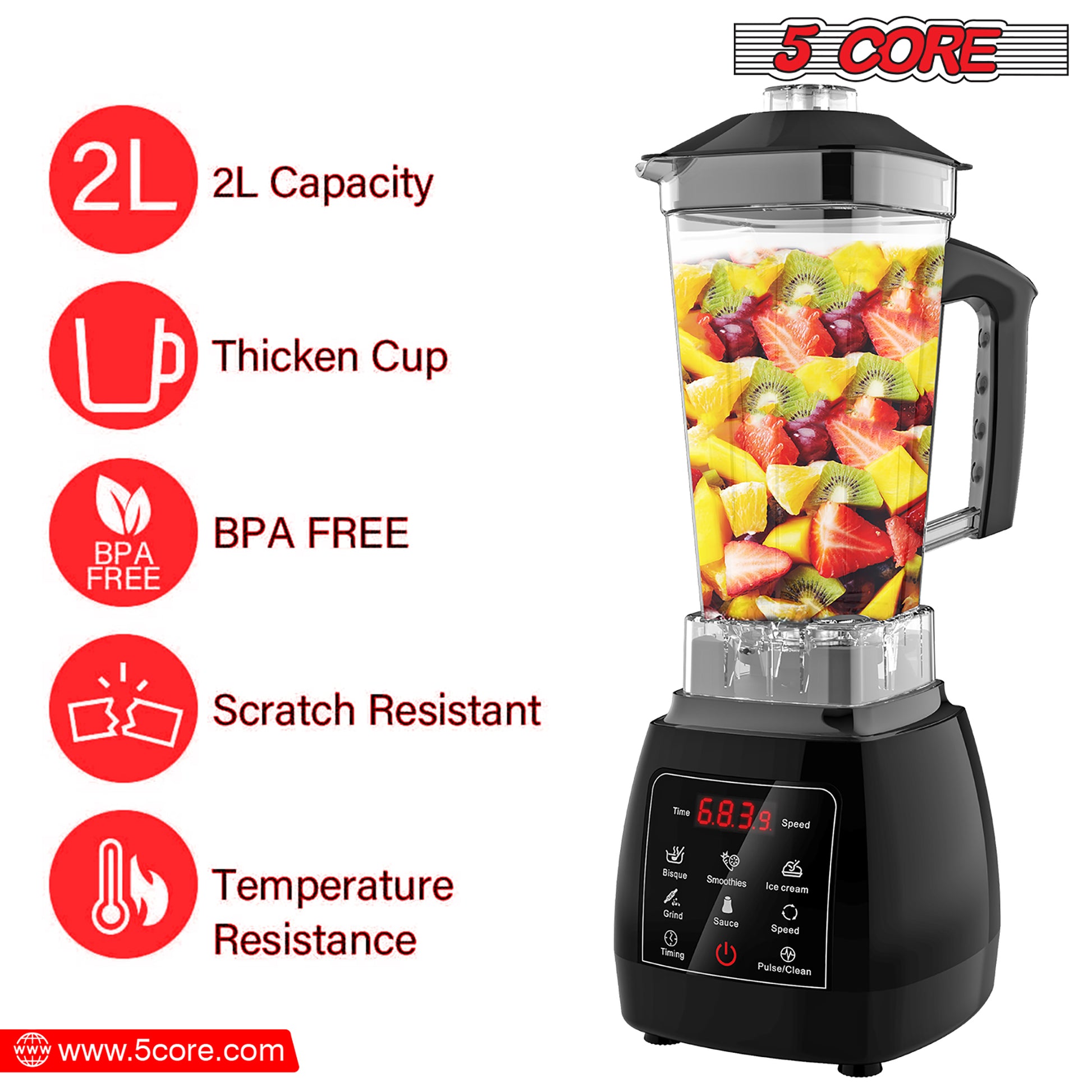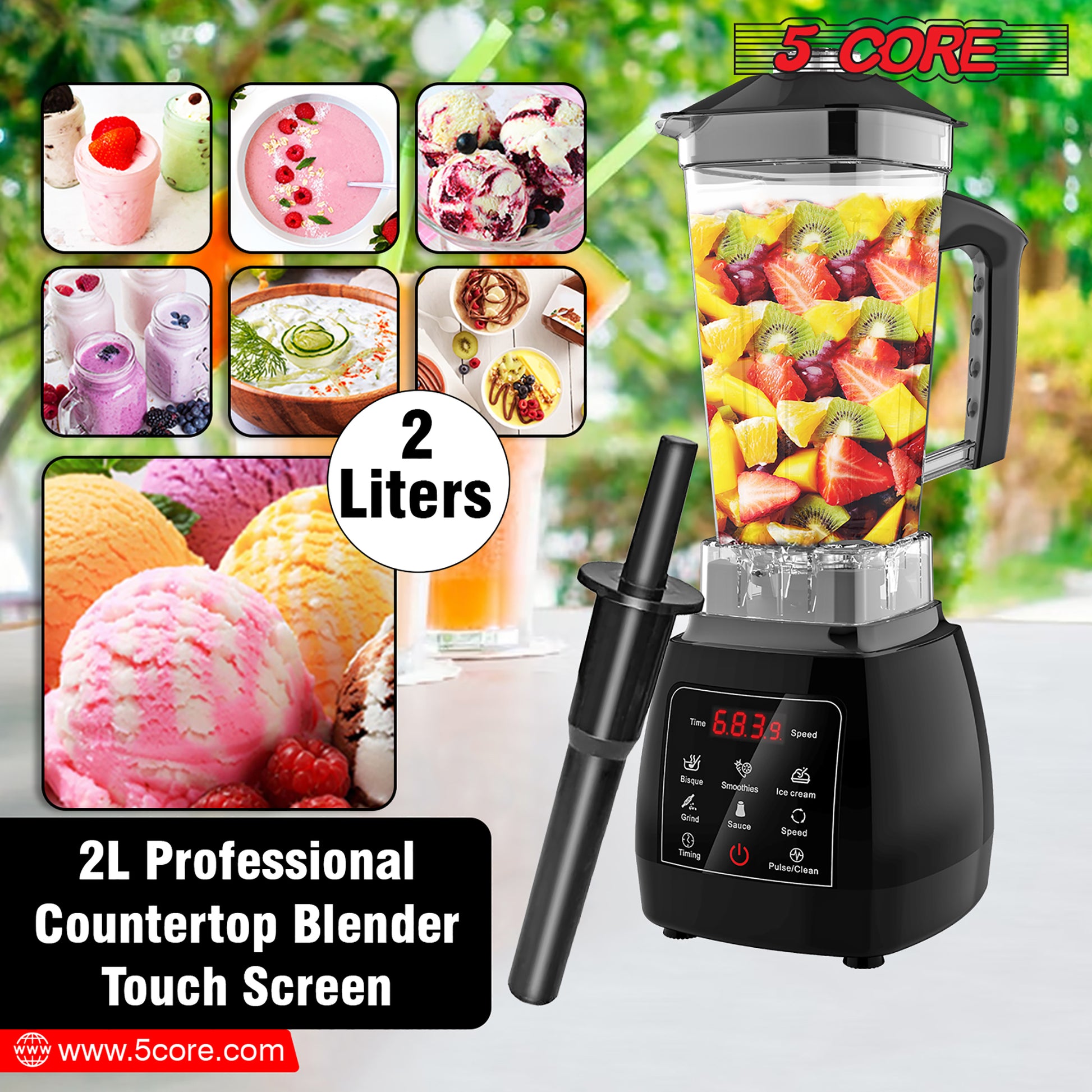Transform the way you create delicious recipes with our state-of-the-art countertop kitchen blender. Equipped with modern LED touchscreen controls, this blender not only looks sleek but also ensures easy cleaning. The five program settings provide consistent results and offer convenience. |