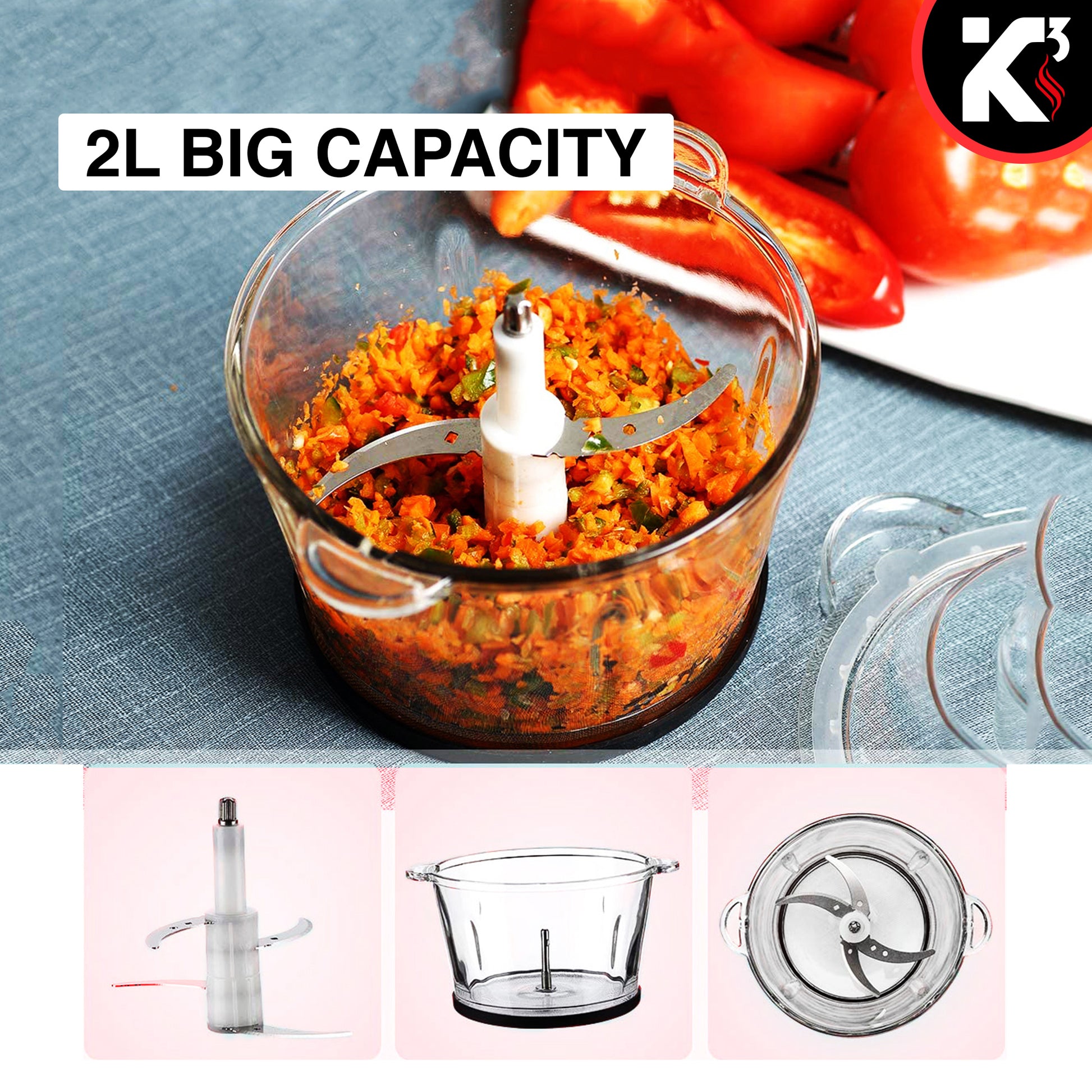 About Electric Food Chopper 2L Glass Bowl Grinder