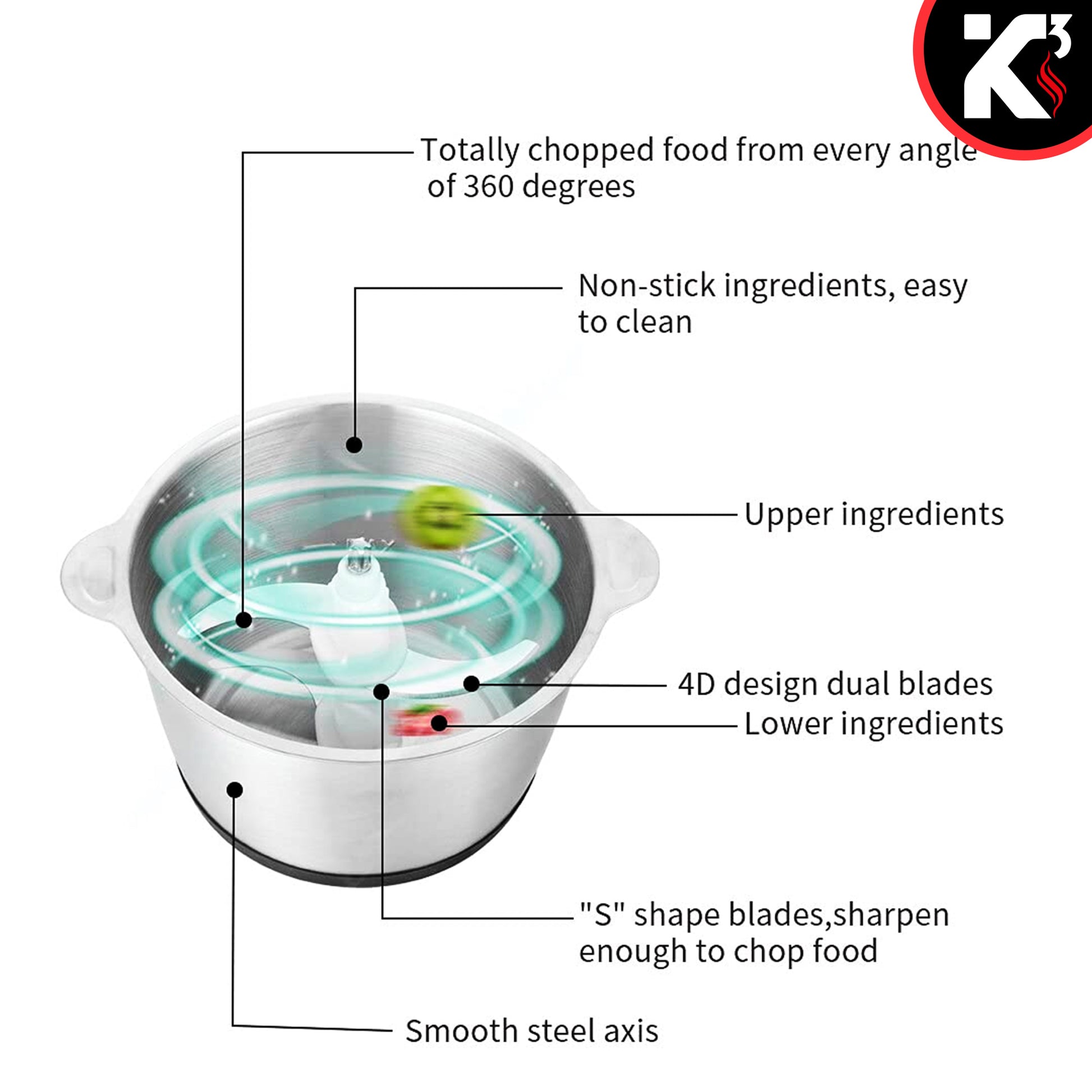 Kcubeinc Food Processor 300W Motor/ Electric Chopper Heavy Duty Meat Grinder/ 12 Cup Capacity, Stainless Steel Bowl With 2 Speed for Vegetables, Fruits, Nuts, Coffee Beans, Lean Ground Meat- MG S SSB