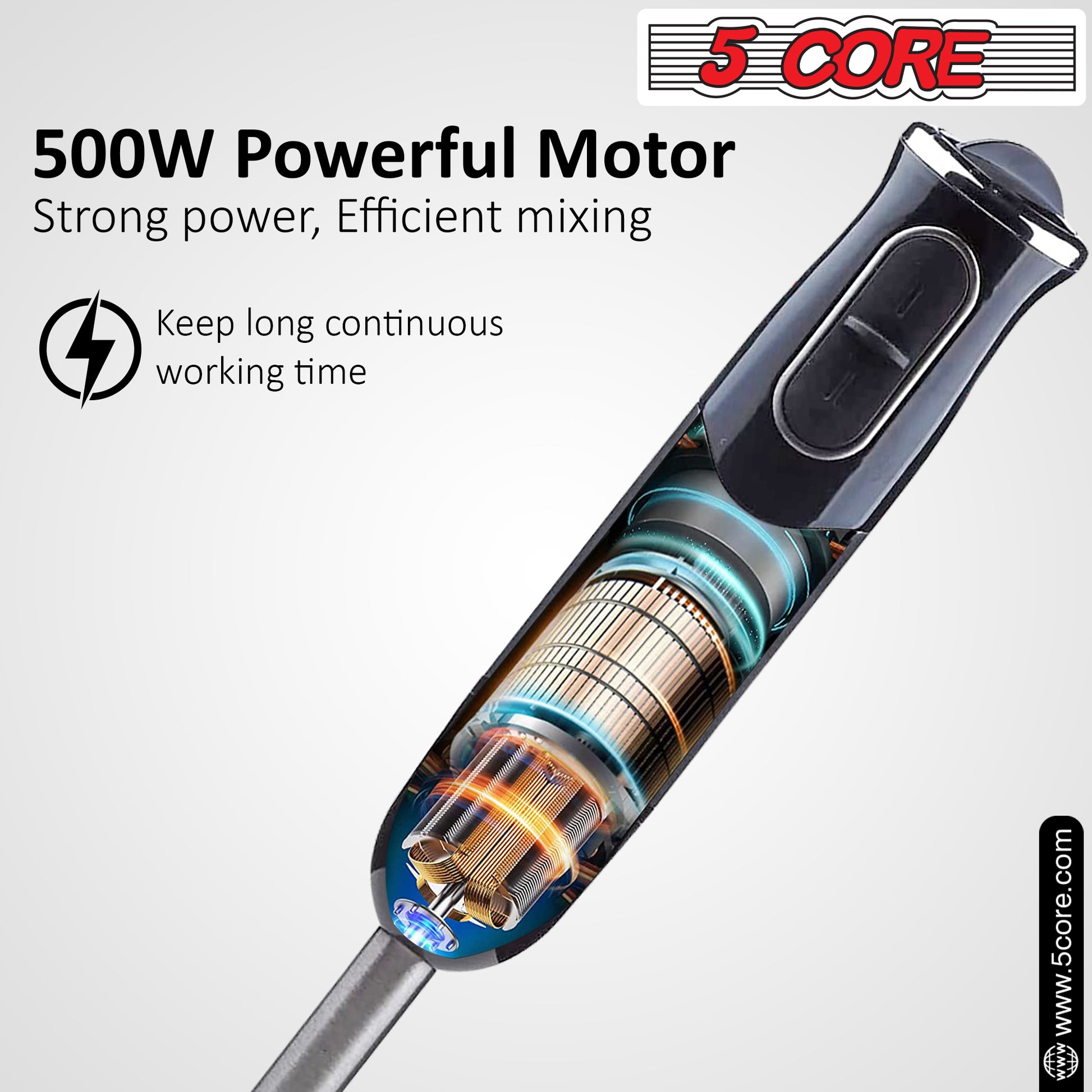 Powerful Immersion Blender| 500 Watt Multi-Purpose Hand Blender Heavy Duty Copper Motor Brushed Stainless Steel| for Soup, Smoothie, Puree, Baby Food, 304 Stainless Steel Blades- HB 1510