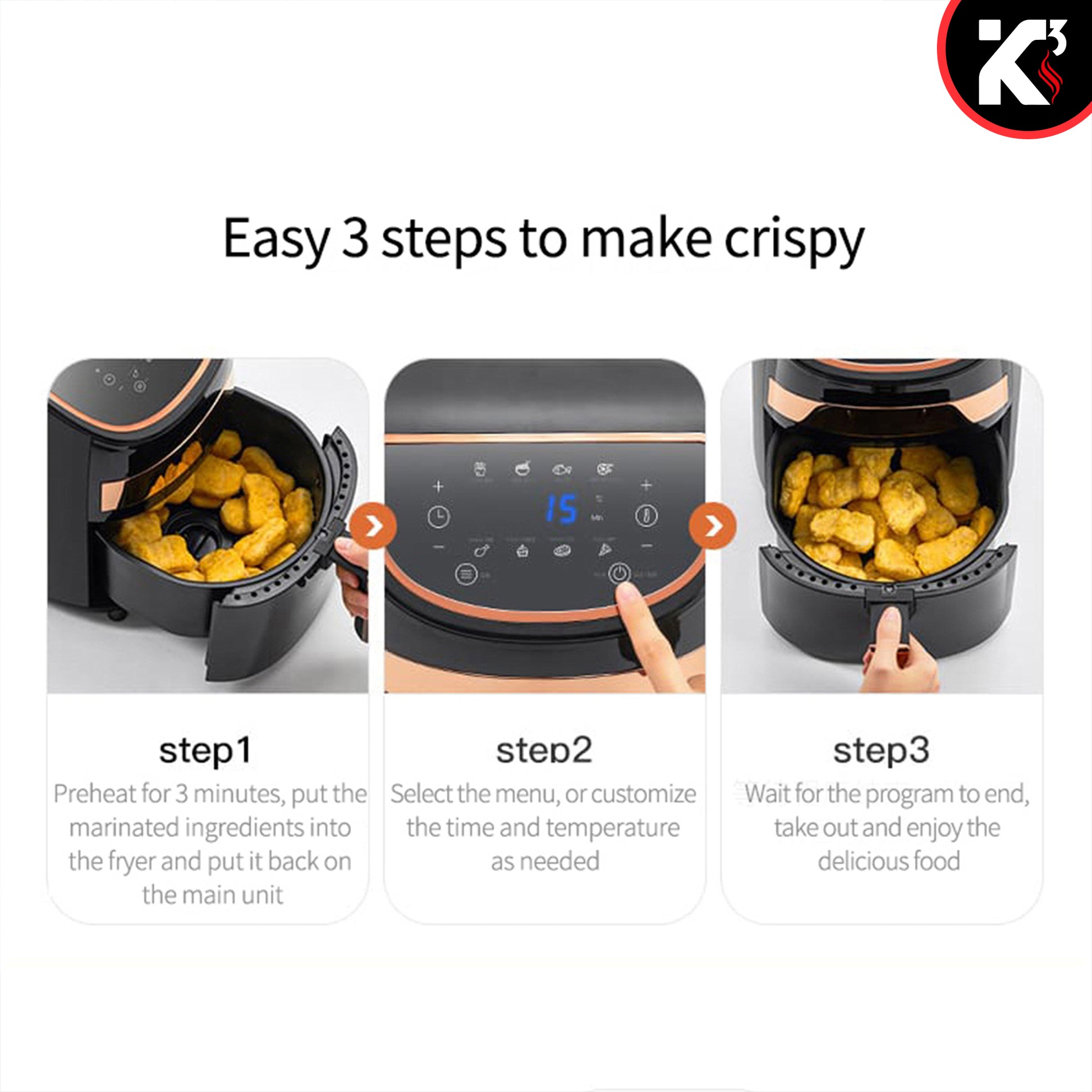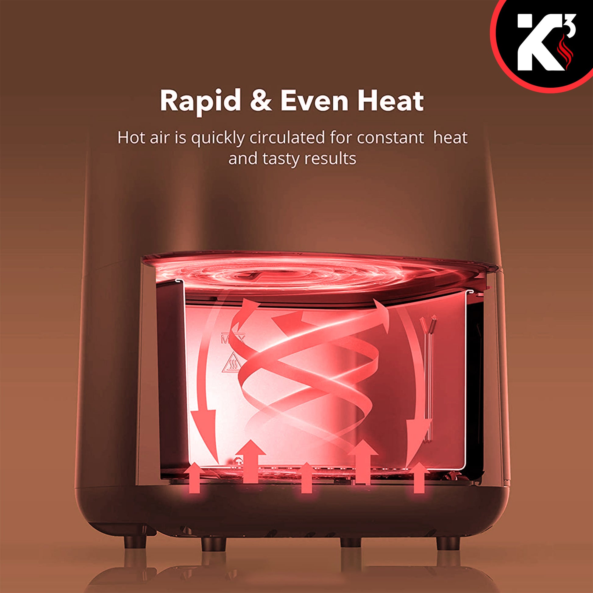 Healthier Frying: "Healthy fried dishes" are now a reality thanks to the air fryer. A temperature range of 200–400°F enables you to cook at the temperature you like while using at least 98% less oil than conventional fryers to produce a healthy, crispy, fried finish. This instant pot air fryer uniformly crisps every inch of your food as it air fries vegetables, pizza, frozen items, and leftovers.