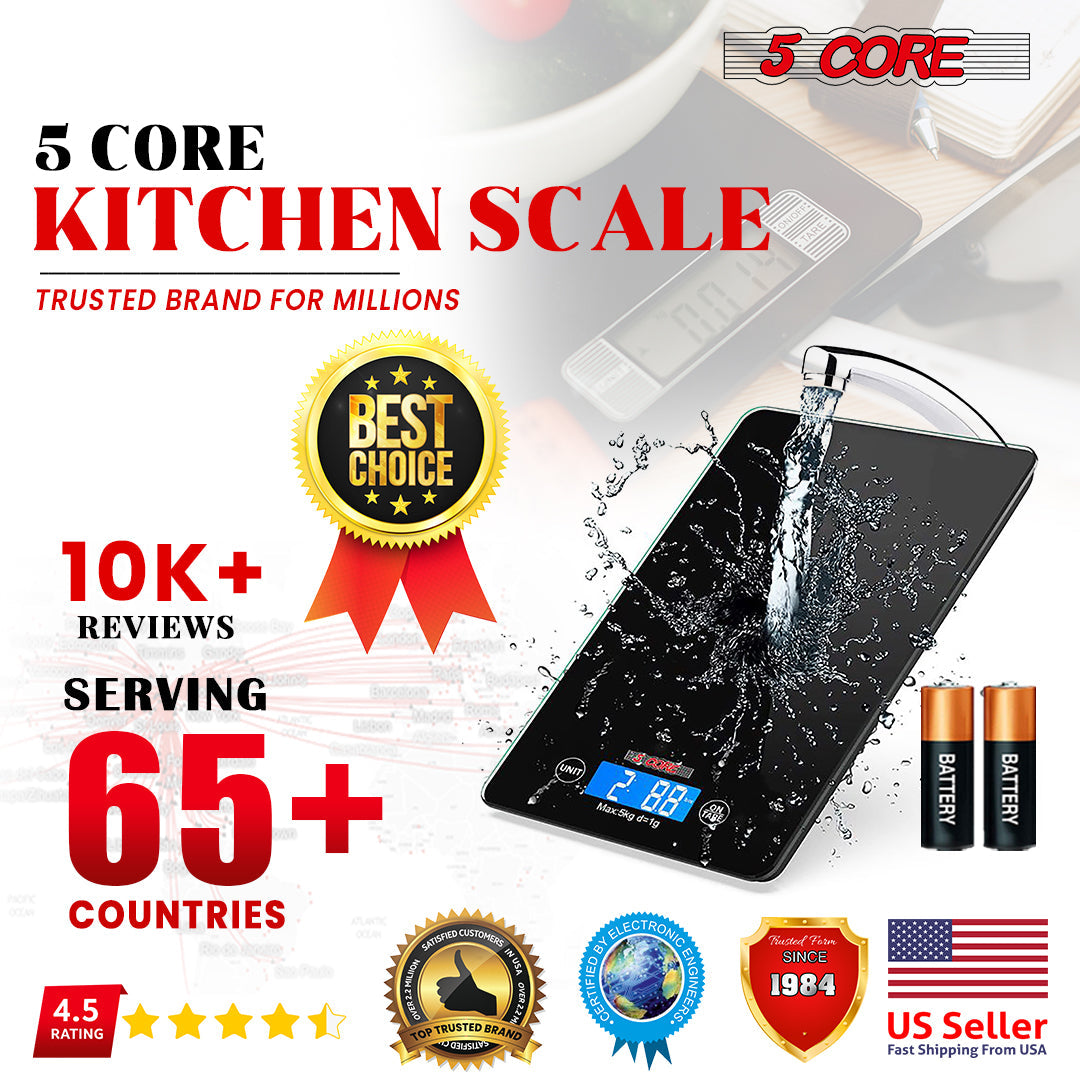 - Sleek and durable design: Constructed of stainless steel and a premium glass body(top), this digital food scale is stylish and easy to clean and use. The control is user-friendly and equipped with high-precision sensors to ensure correct readings.