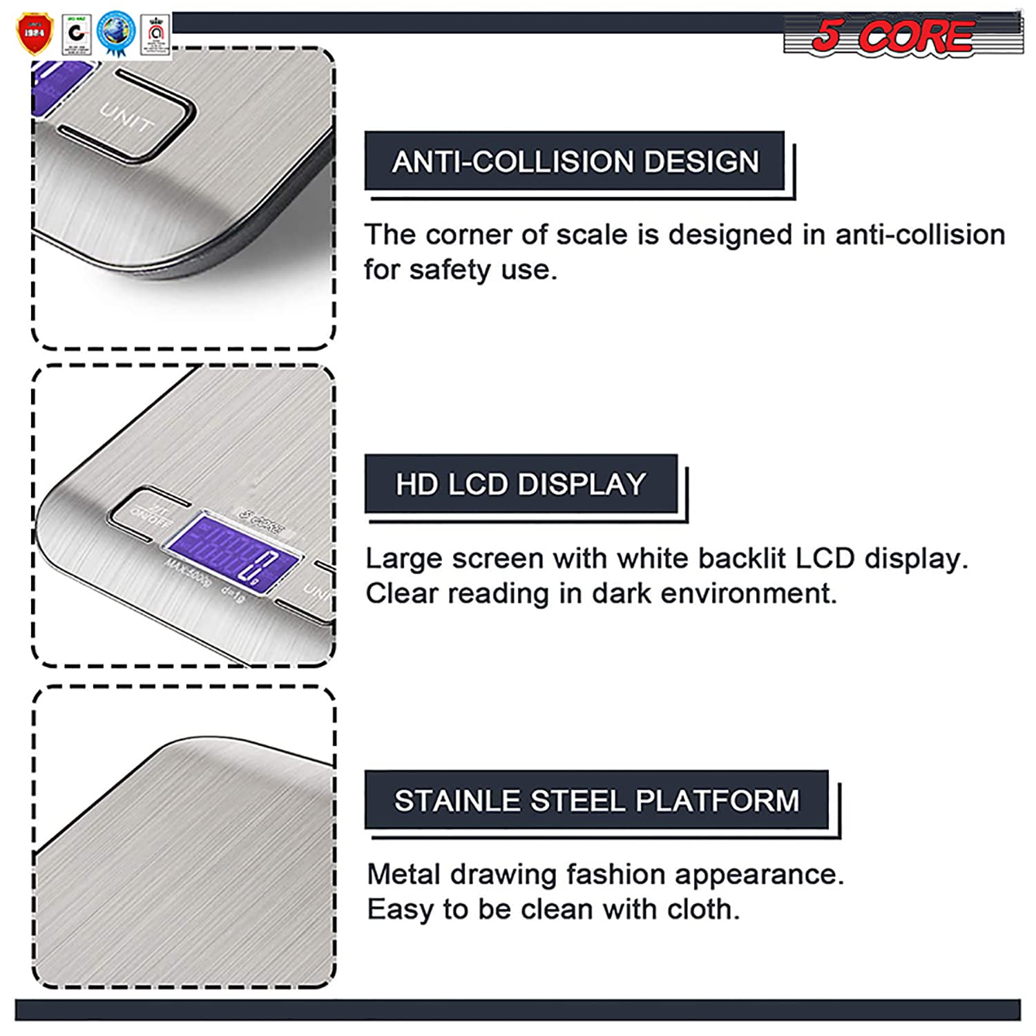 Kcubeinc Food Scale Digital Kitchen Scale 11Lb Silver / 5KG Food Scale with LCD Display for Baking Cooking and Meal Prep, 6 Units with Tare Function/ Weight - KG, LB, GM & OZ 11LB/Batteries Included- K 53