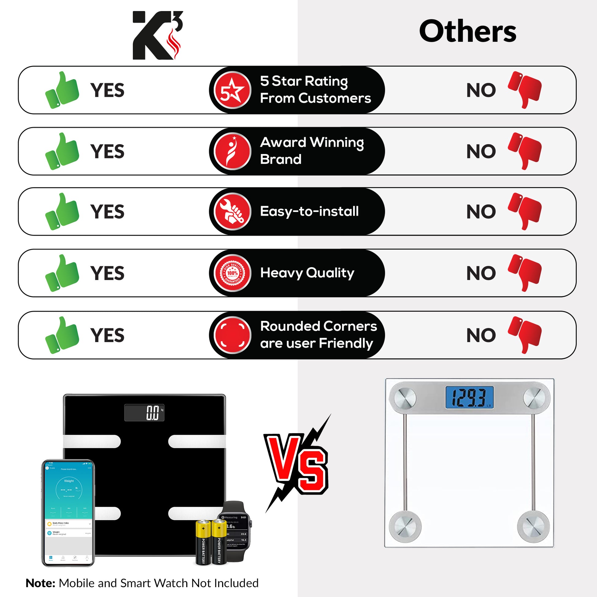 Syncs With Fitness App: The Kcubeinc smart digital bathroom scale uses its inbuilt Bluetooth technology to sync with the fitness app. The bathroom scale can sync data with Android and iOS devices, allowing you to keep track of your goals irrespective of device type.