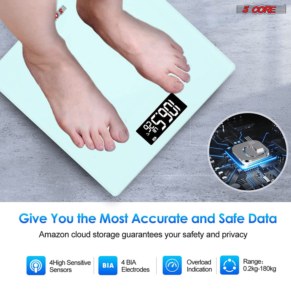High-Quality Innovation: The weight scale boasts state-of-the-art innovation, including auto-calibration and high precision sensors that measure 0.2 lb and 0.05 kg increments with a 400 lb, 180 kg capacity. The bathroom scale has four highly sensitive electrodes that accurately measure the data in seconds.